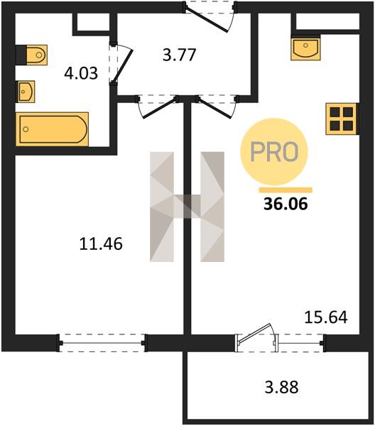 1-комн. квартира 35.97 м² в ЖК «Теплые Края»