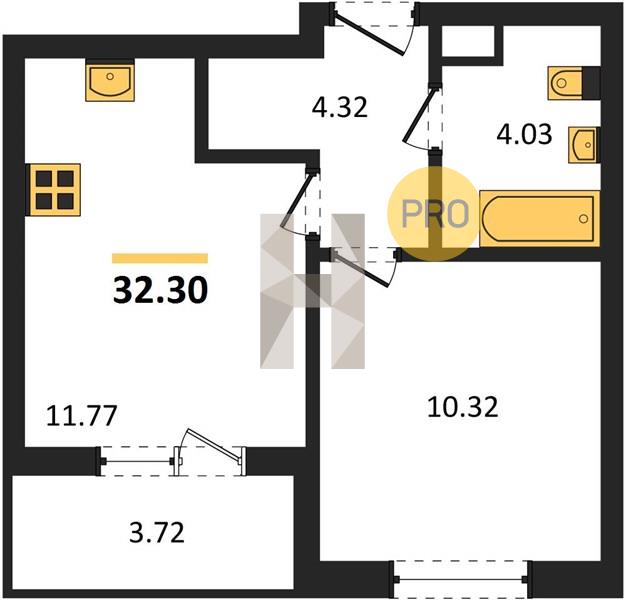 1-комн. квартира 32.25 м² в ЖК «Теплые Края»