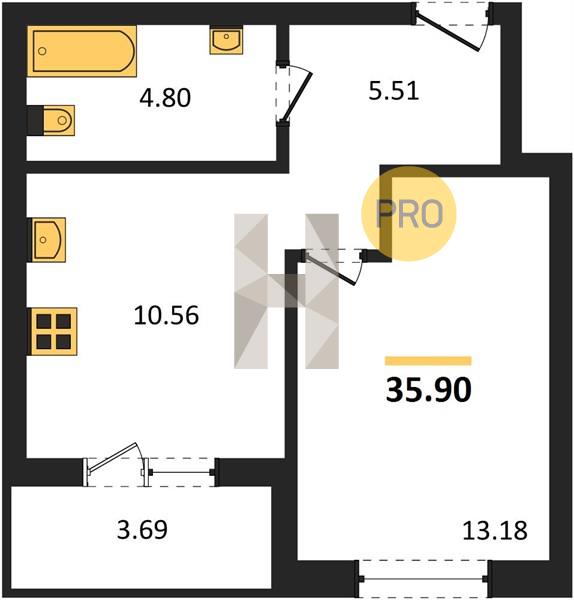 1-комн. квартира 35.90 м² в ЖК «Теплые Края»