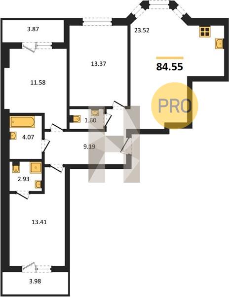 3-комн. квартира 84.55 м² в ЖК «Теплые Края»