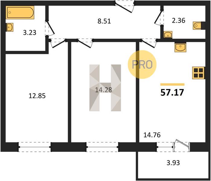 2-комн. 57.08 м²