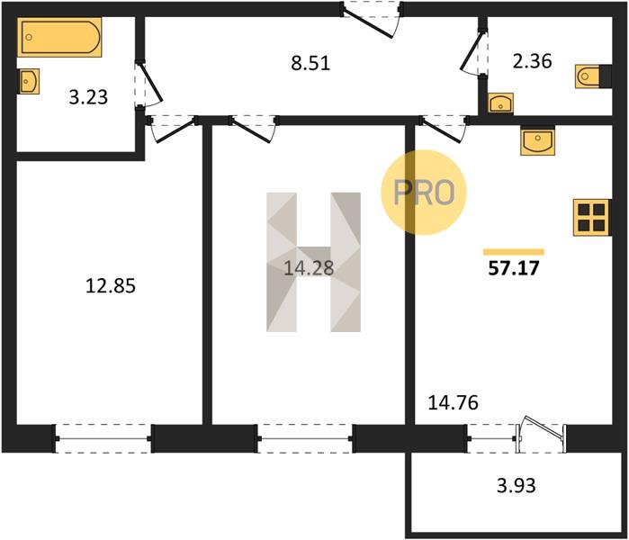 2-комн. 56.98 м²