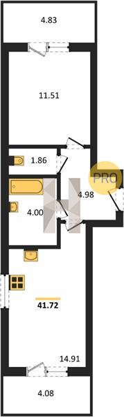 1-комн. квартира 42.50 м² в ЖК «Теплые Края»