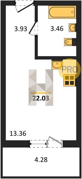 0-комн. квартира 21.70 м² в ЖК «Теплые Края»