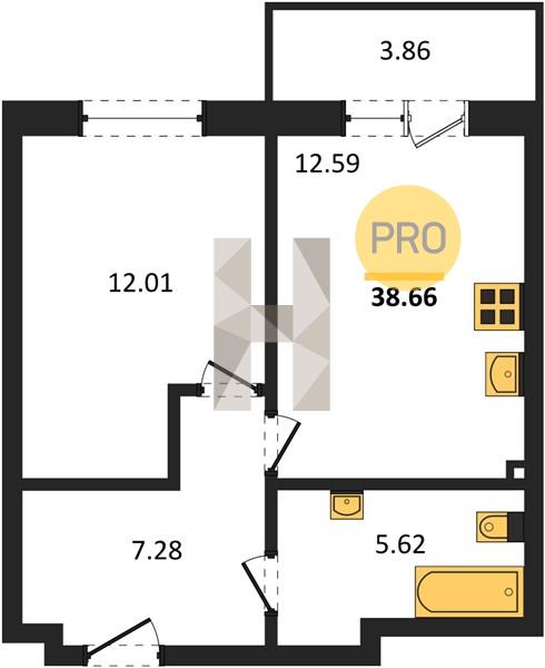 1-комн. квартира 38.03 м² в ЖК «Теплые Края»