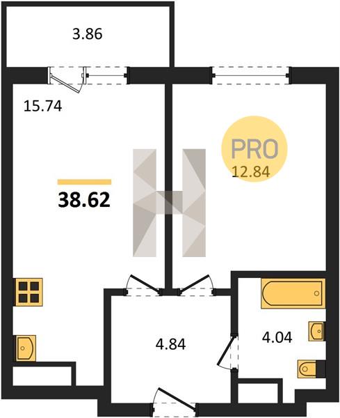 1-комн. квартира 38.43 м² в ЖК «Теплые Края»