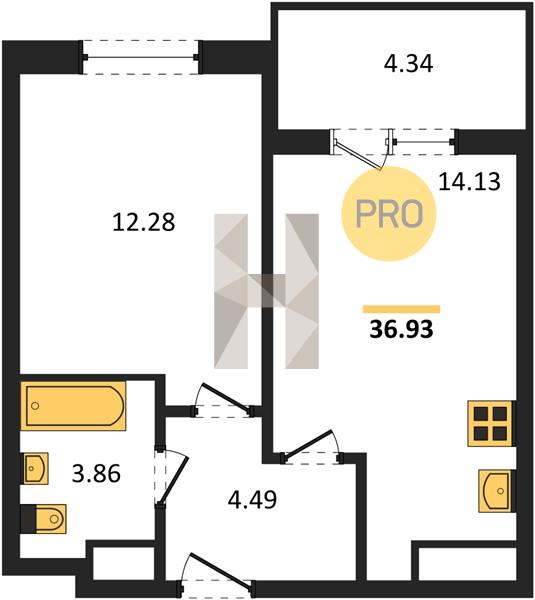 1-комн. квартира 36.80 м² в ЖК «Теплые Края»
