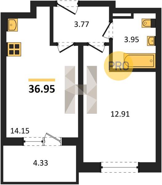 1-комн. квартира 36.85 м² в ЖК «Теплые Края»