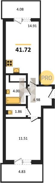 1-комн. квартира 41.50 м² в ЖК «Теплые Края»