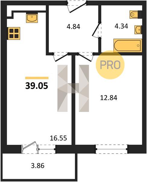 1-комн. квартира 39.05 м² в ЖК «Теплые Края»