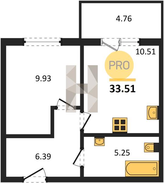 1-комн. квартира 34.34 м² в ЖК «Теплые Края»