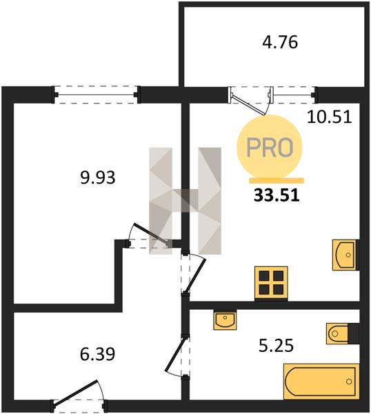 1-комн. квартира 34.14 м² в ЖК «Теплые Края»