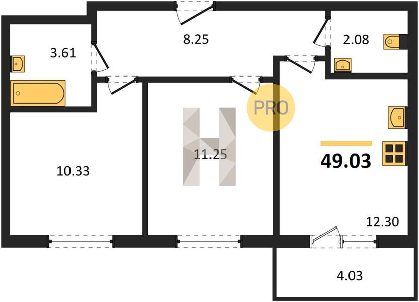 2-комн. квартира 48.60 м² в ЖК «Теплые Края»
