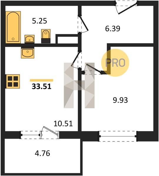 1-комн. квартира 33.87 м² в ЖК «Теплые Края»