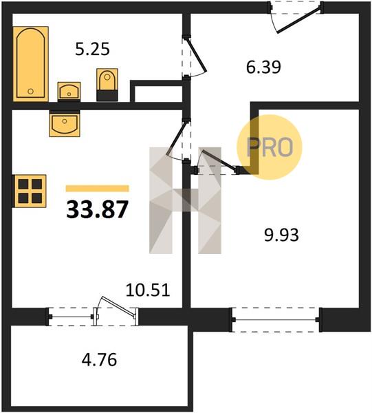 1-комн. 33.87 м²