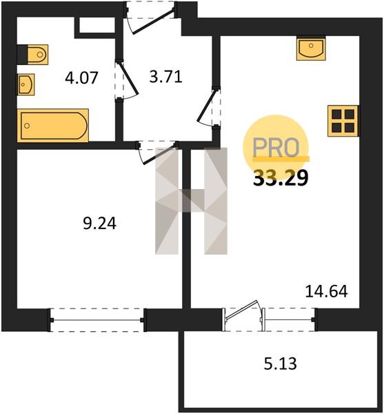 1-комн. квартира 33.29 м² в ЖК «Теплые Края»