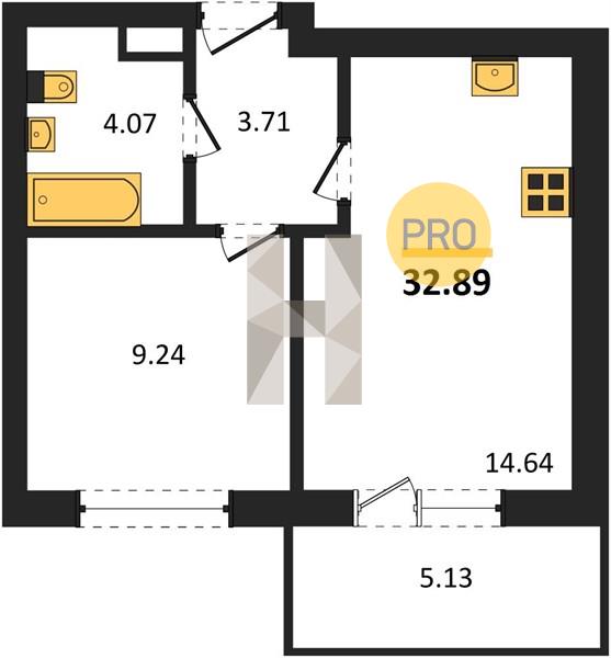 1-комн. квартира 32.89 м² в ЖК «Теплые Края»