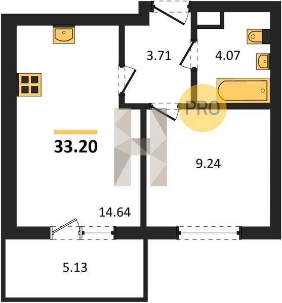 1-комн. квартира 33.36 м² в ЖК «Теплые Края»
