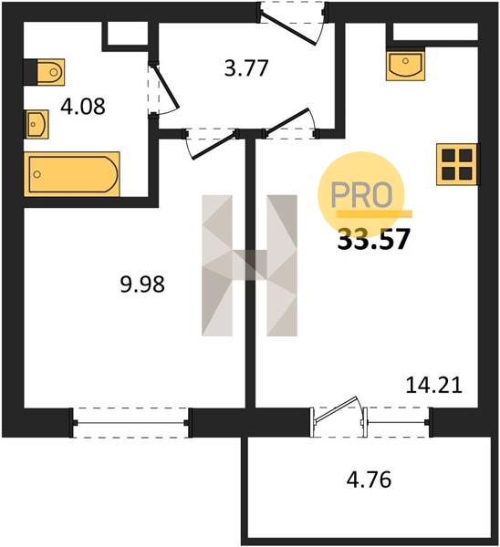 1-комн. квартира 33.57 м² в ЖК «Теплые Края»