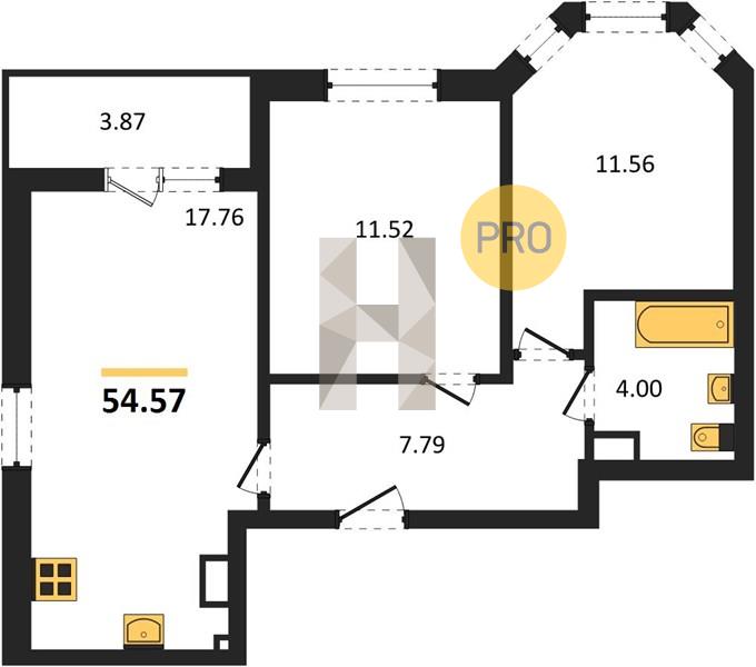2-комн. 54.57 м²