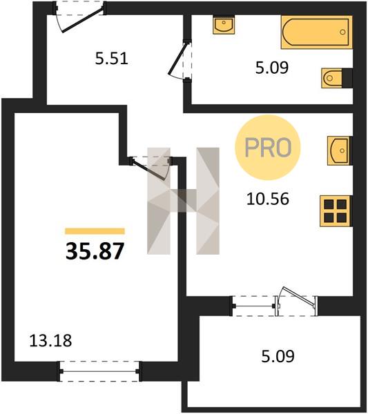 1-комн. квартира 35.87 м² в ЖК «Теплые Края»
