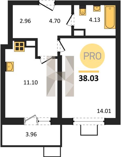 1-комн. квартира 38.03 м² в ЖК «Теплые Края»