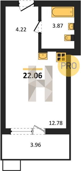 0-комн. квартира 22.06 м² в ЖК «Теплые Края»