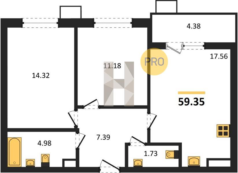 2-комн. 59.35 м²