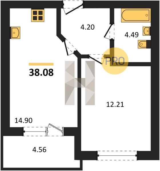 1-комн. квартира 38.08 м² в ЖК «Теплые Края»