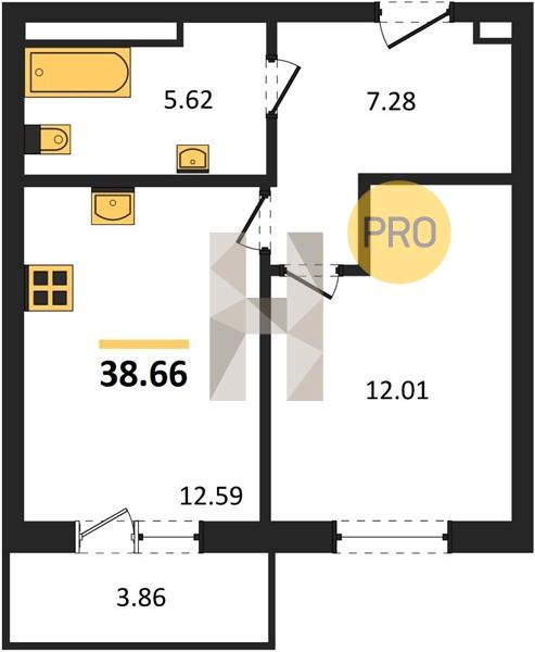 1-комн. квартира 38.66 м² в ЖК «Теплые Края»