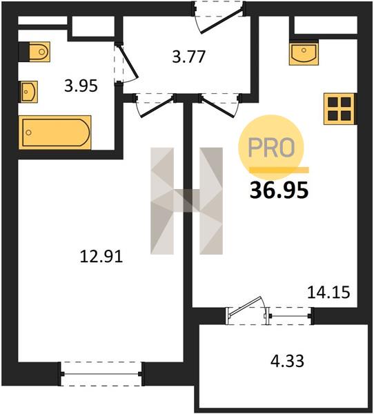 1-комн. квартира 36.95 м² в ЖК «Теплые Края»