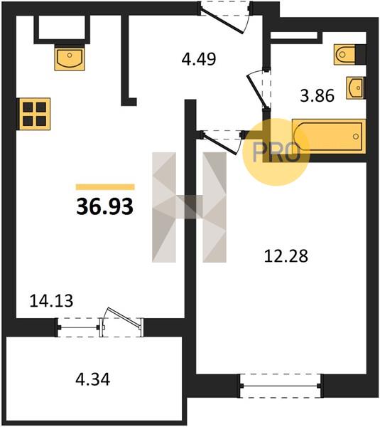1-комн. квартира 36.93 м² в ЖК «Теплые Края»