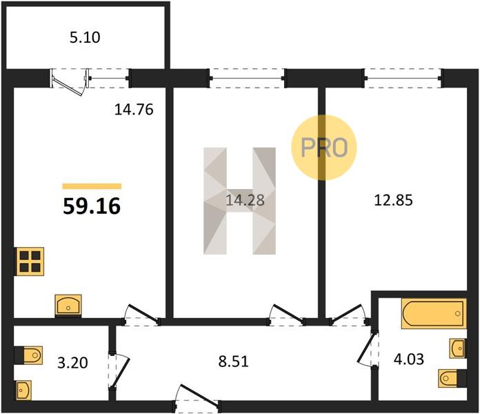 2-комн. квартира 59.16 м² в ЖК «Теплые Края»