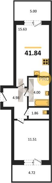 1-комн. квартира 41.84 м² в ЖК «Теплые Края»