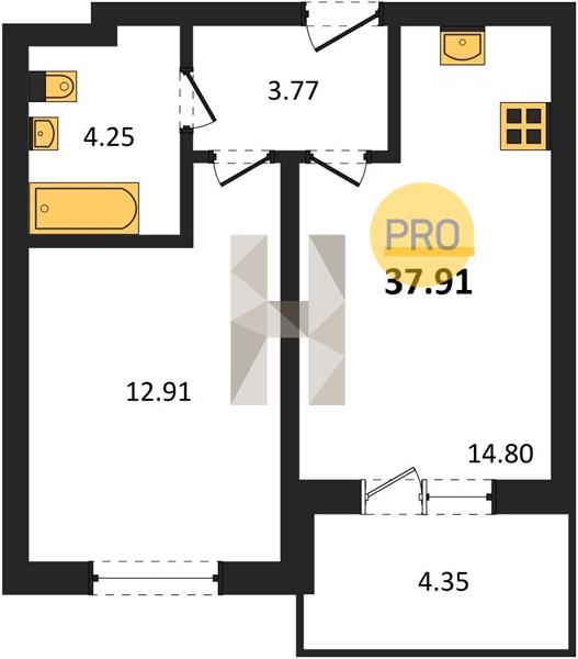 1-комн. квартира 37.91 м² в ЖК «Теплые Края»