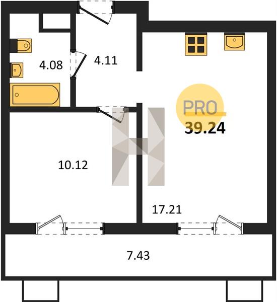 1-комн. квартира 39.24 м² в ЖК «Теплые Края»