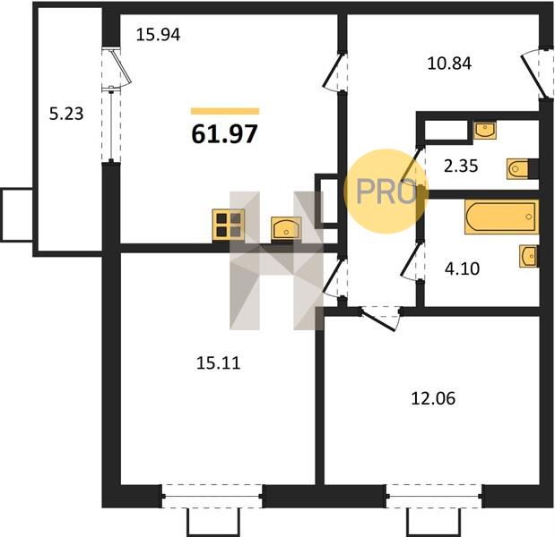 2-комн. квартира 61.97 м² в ЖК «Теплые Края»
