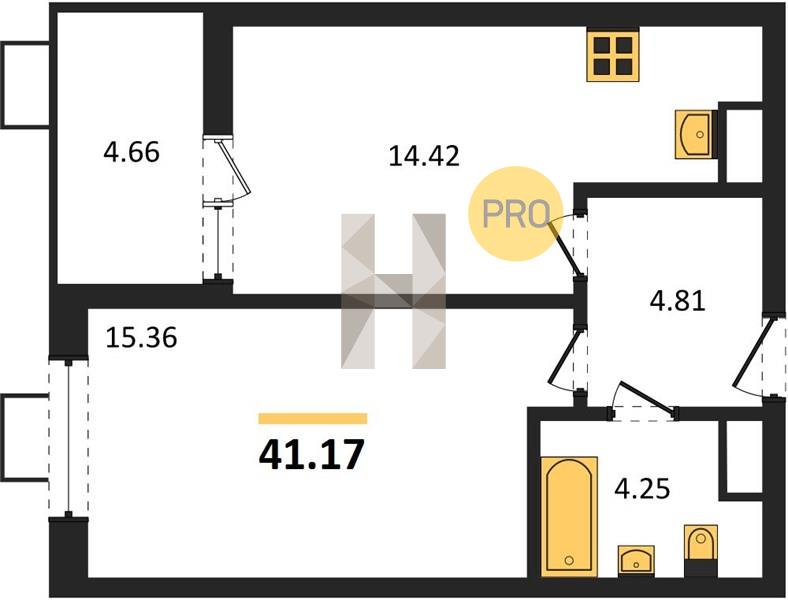 1-комн. квартира 41.17 м² в ЖК «Теплые Края»