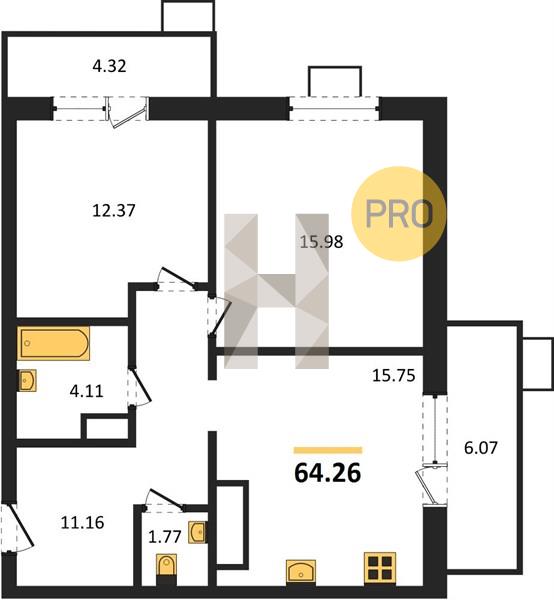 2-комн. квартира 64.26 м² в ЖК «Теплые Края»