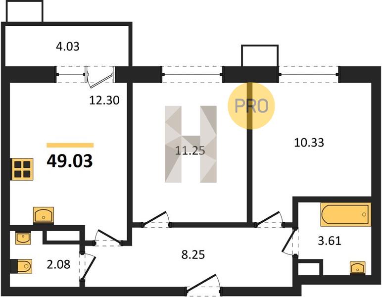 2-комн. 49.03 м²
