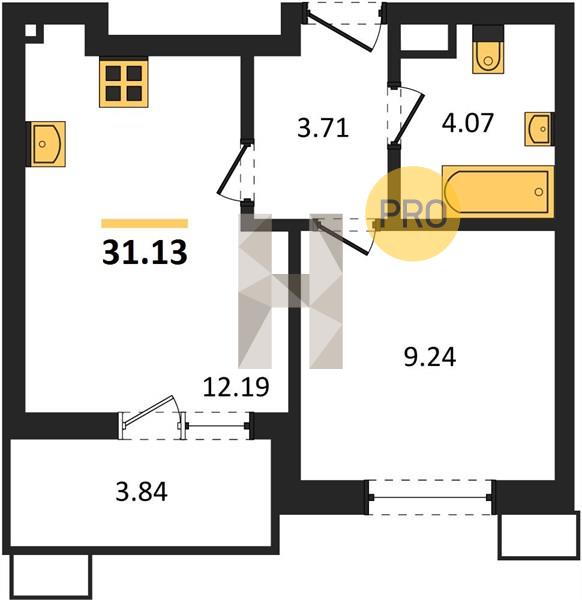 1-комн. 31.13 м²
