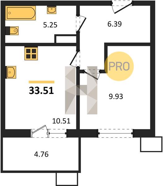 1-комн. квартира 33.51 м² в ЖК «Теплые Края»