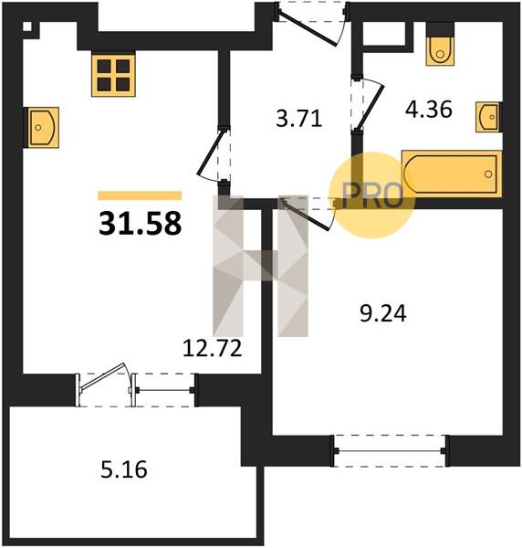 1-комн. квартира 31.58 м² в ЖК «Теплые Края»