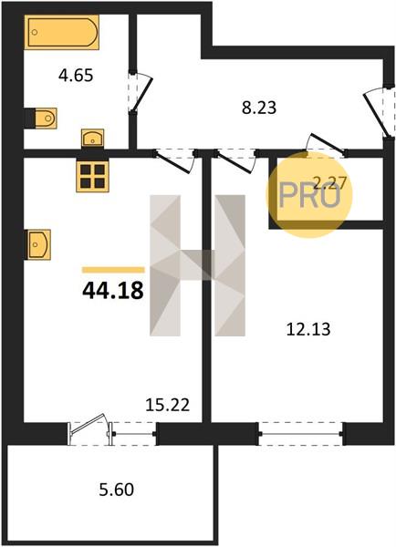 1-комн. квартира 44.18 м² в ЖК «Теплые Края»