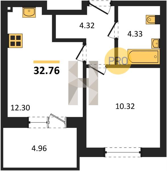 1-комн. 32.76 м²