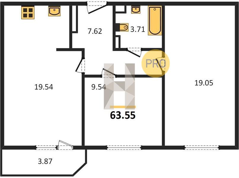 2-комн. 63.55 м²