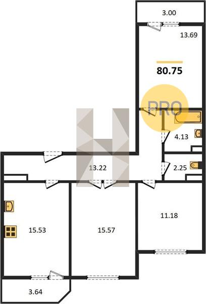 3-комн. 80.75 м²