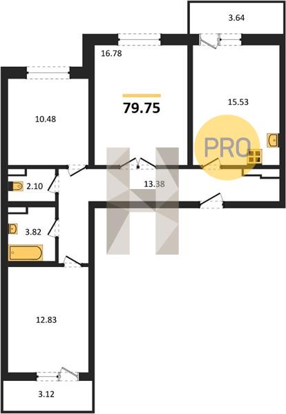 3-комн. квартира 79.75 м² в ЖК «URAL» (Урал)