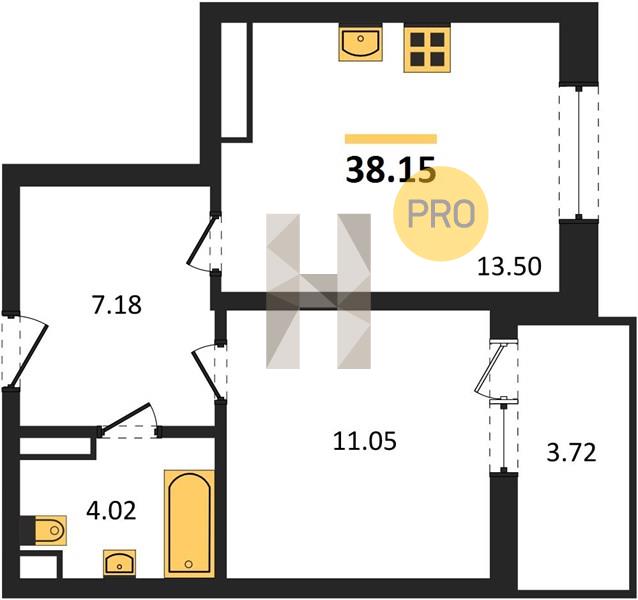 1-комн. квартира 38.15 м² в ЖК «URAL» (Урал)