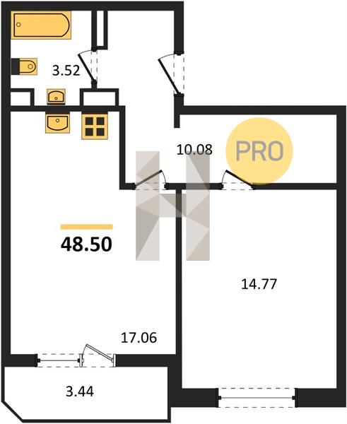 1-комн. 48.50 м²